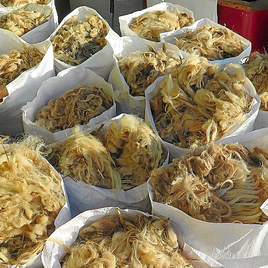 Proceso: Color natural. Contiene ciertos residuos naturales. Es el descarte del cardado de la lana.